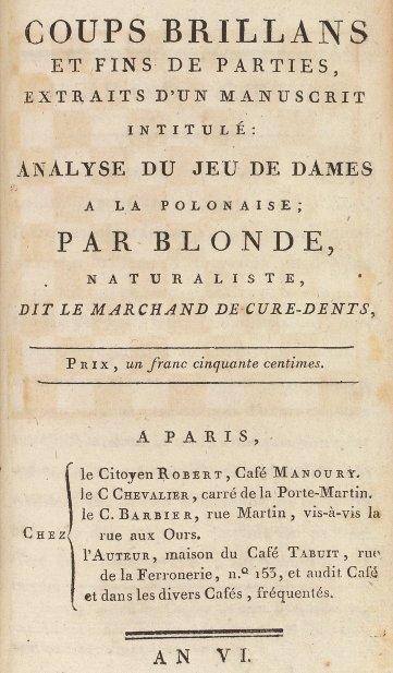 1845 Traite de Jeu de Dames C. Van Tenac |