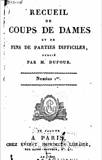 1807 Recueil aux Coups de Dames et de Fins de parties Difficiles M. Dufour |