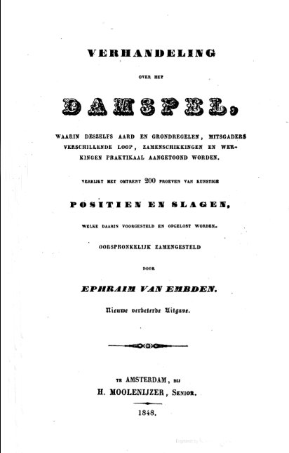 Vorige eeuw, en de eeuw daarvoor werd er in Belgie ook al gedamd. Veel is daar niet van bewaard gebleven, maar er zaten enkele geniale problemisten onder onze voorgangers.